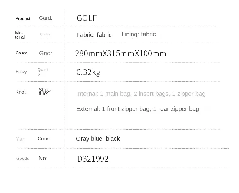 حقيبة كتف جولف رجالية خفيفة الوزن السعر الأصلي هو: 646.السعر الحالي هو: 323.